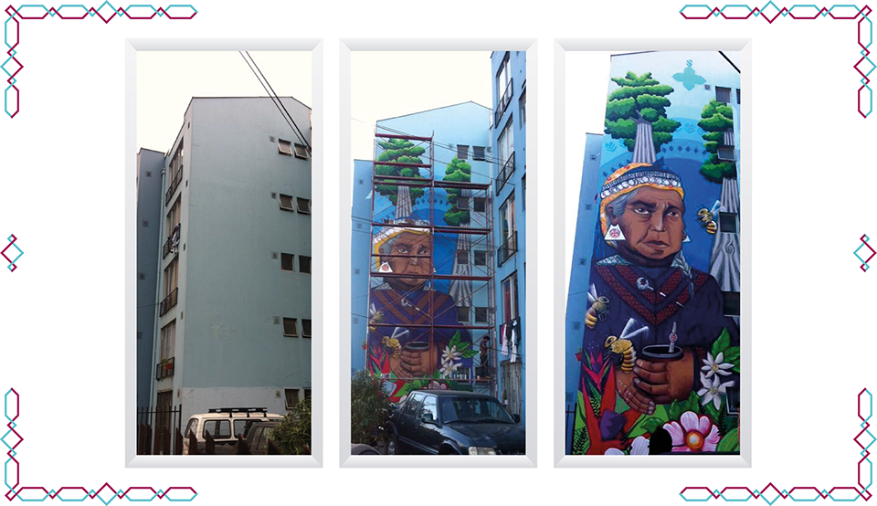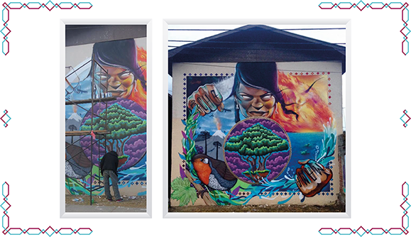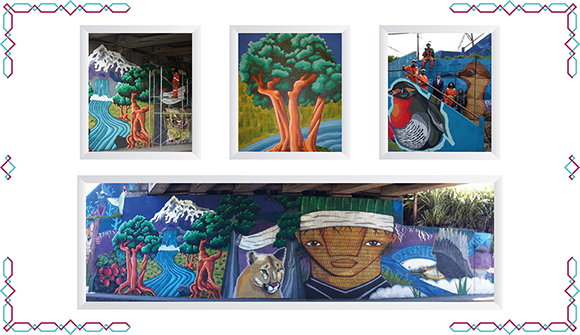 FESTIVAL RAÍCES DE LA TIERRA: Mural realizado en conjunto a 2 artistas en conmemoración del encuentro de muralistas, música y tradiciones del pueblo mapuche.